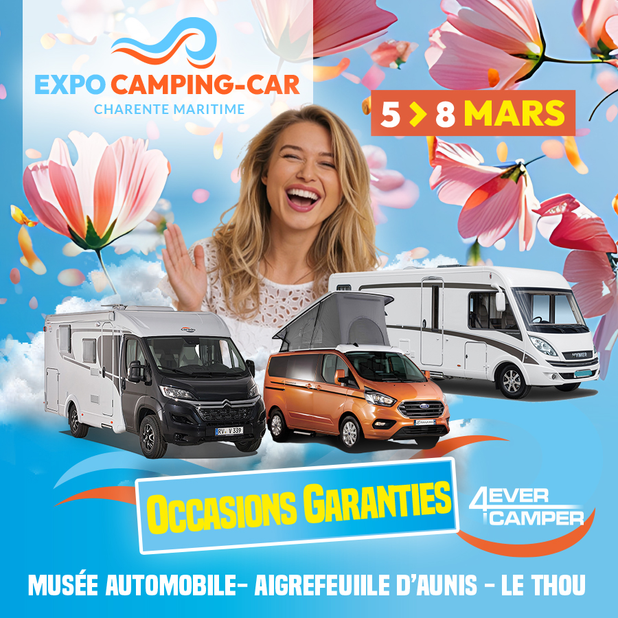 Du 5 au 8 mars, au Musée de l’Auto Aigrefeuille d’Aunis au Thou, venez découvrir une grande exposition-vente de plus 100 camping-cars, vans et fourgons : les nouveautés printemps 2026, les fins de série et les occasions révisées et garanties.